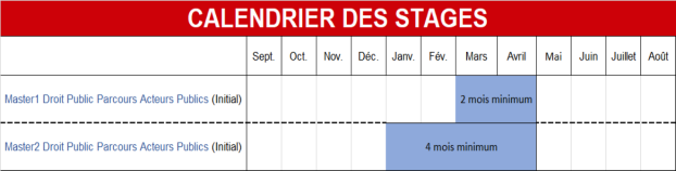 En parallèle, au fil des semestres, les étudiants prennent connaissance de la diversité des métiers du secteur public à travers des ateliers professionnalisants, des Rendez-vous pro du Master, et la réalisation de deux stages longs (un de 2 mois minimum en première année puis un second de 4 mois en fin de parcours). Les étudiants sont également formés pour réussir les concours de catégorie A ou A+ de la fonction publique.